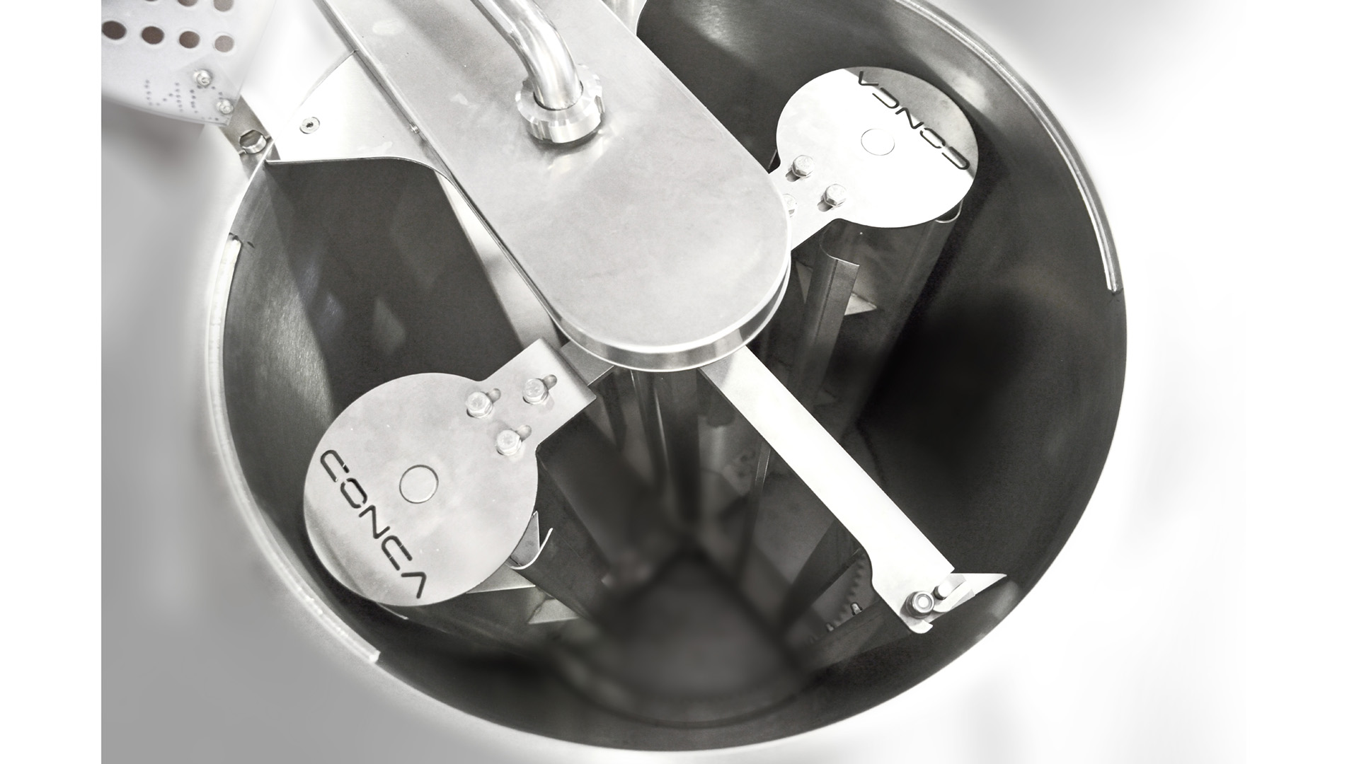 The new model of CONCA 200 and 400 features a greatly improved system for mixing the chocolate, thanks to an innovative inertial rotary system which, in addition to the usual rotation of the stirrer, adds a second and simultaneous orbital rotation. This method of conching produces a final product with incomparable aromatic notes.