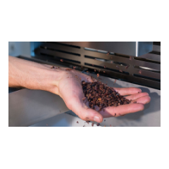 - Two separate hoppers for crushed parts: one for the obtained nibs and the other for the processing waste.